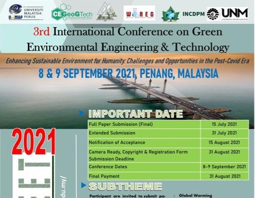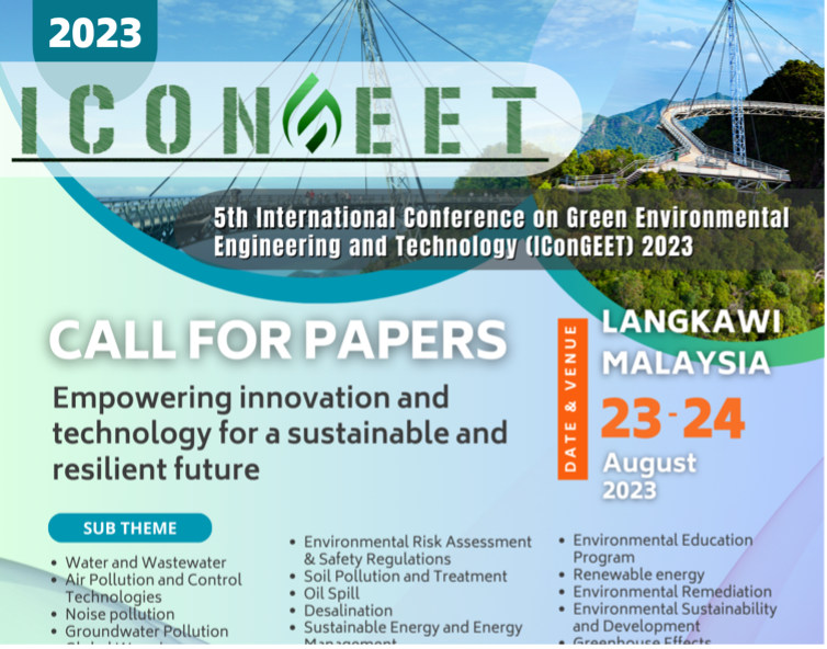 We are excited to invite researchers, academicians, and industry professionals to the 7th International Conference on Green Environmental Engineering and Technology (IConGEET 2025), happening on 12th September 2025 in Jakarta, Indonesia.